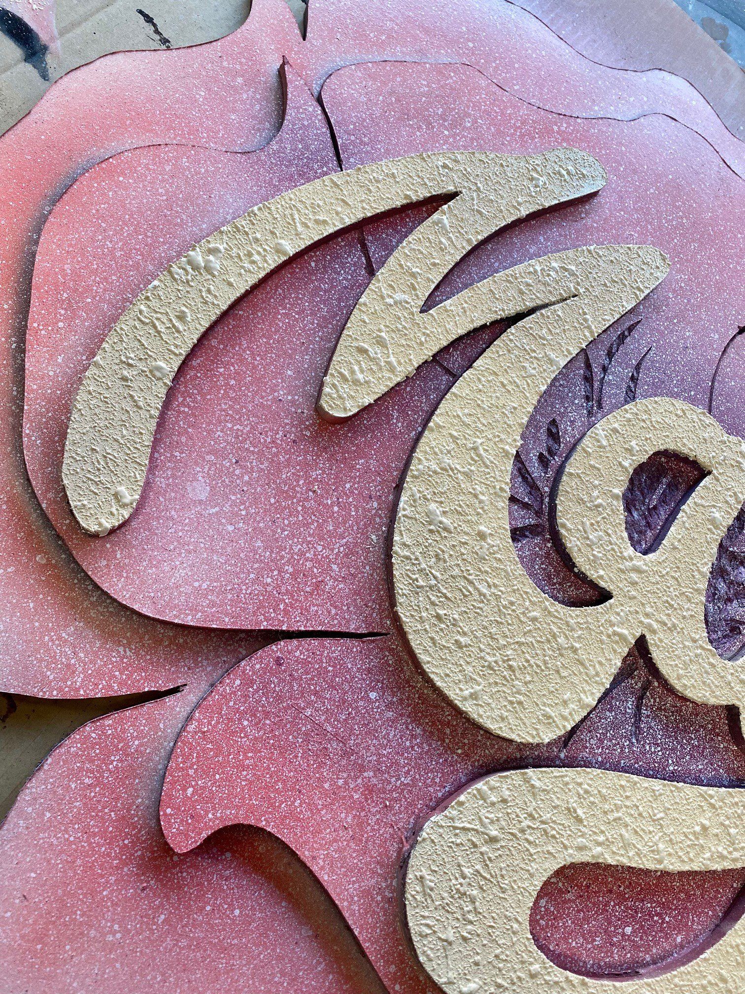 Minimal paint. All areas carved to show relief. Dimensions 4 feet height & width